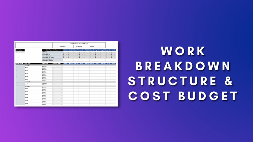 A fully customisable Excel spreadsheet for Project Management Work Breakdown and Cost Budgeting.